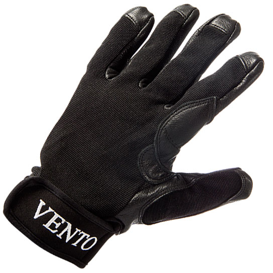 Защита ладони и пальцев обеспечивается благодаря двойному слою натуральной кожи. Верхняя часть перчатки выполнена из дышащего, эластичного нейлона. Манжеты из тонкого неопрена с застежкой на липучке позволяют регулировать обхват кисти руки.