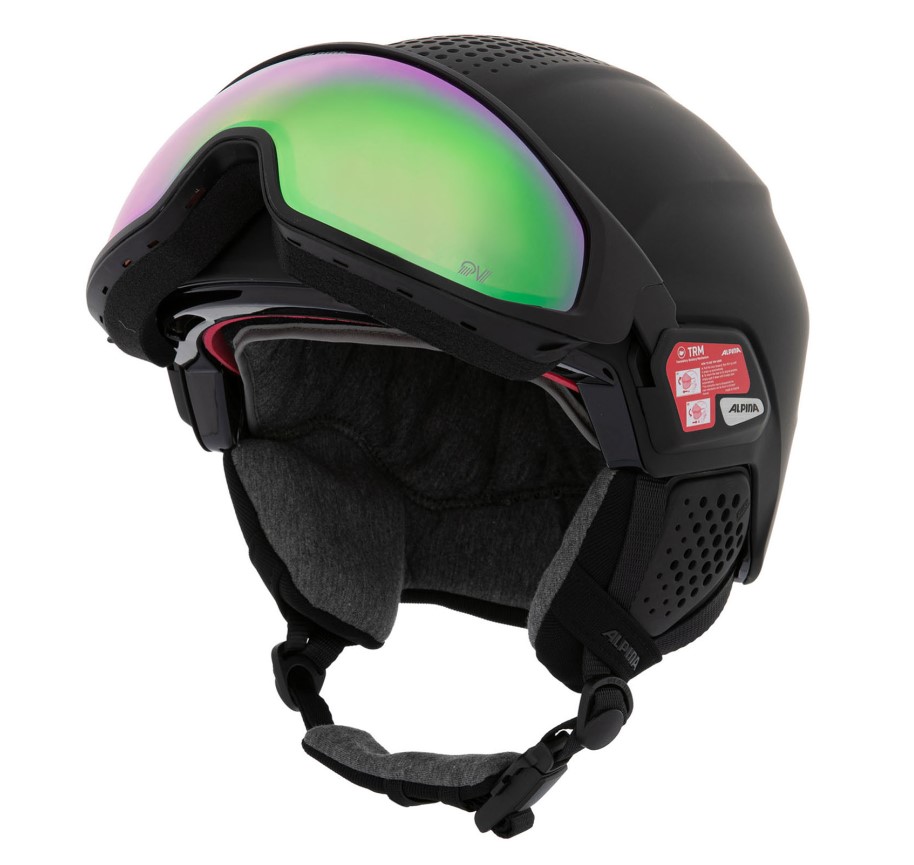 Шлем оборудован визором, поэтому вам не придется дополнительно заботиться о приобретении маски. Поворотный механизм TRM позволяет визору находиться ближе к лицу для комфортной посадки.